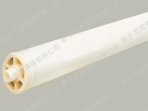 新鄉(xiāng)市濾清器有限公司生產(chǎn)反滲透膜元件,采用全自動(dòng)涂覆設(shè)備生產(chǎn)膜片,以無紡布為支撐基材,在基材上涂覆聚砜多孔樹脂層,然后通過界面聚合反應(yīng),在頂端形成交聯(lián)網(wǎng)狀皮層,皮層厚度達(dá)到0.2微米左右。致密的皮層是實(shí)現(xiàn)脫鹽功能的核心分離層,致密皮層為芳香族聚酰胺材料。